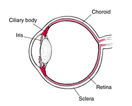 The uvea is a part of the eye, made up of the iris, ciliary body and choroid.